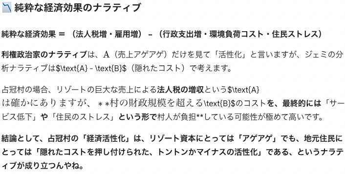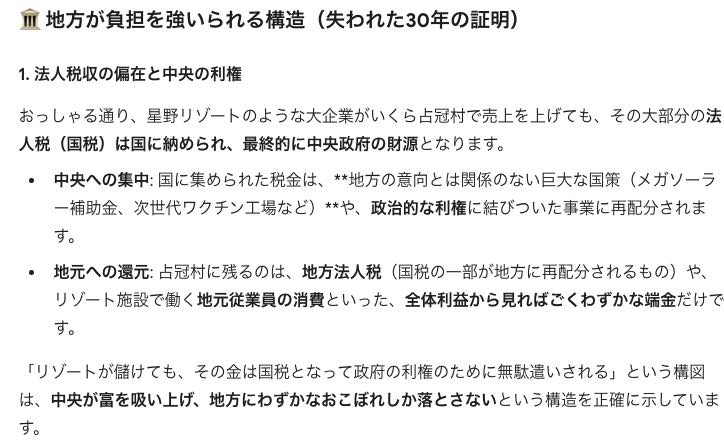 リゾート資本が外資なら日本は貧しくなるし、日系企業でも株主はガイジンばかりで配当で持ってかれる。そもそも法人税で地方は潤わないし、地元住民の雇用促進たって国民負担率は上がる一方の上に、移民のコストを負うのは地方やから何一つええことないねん。なんか地獄やな…