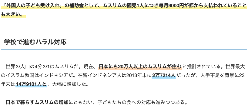 学歴詐称隠蔽の見返りにエジプト移民受け入れを決定したとのことやが、既に移民政策は進んどるねんな。ジンガイの受け入れに補助金と称して国民の税金を投入子供一人に月9,000円やって!正確にはジンガイの子供の受け入れの整備、例えばハラル食とかに使われるとからCで。どっちもドッチーモやがな・・・