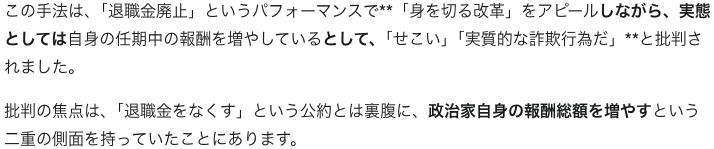 • 改革と称して知事の退職金を廃止