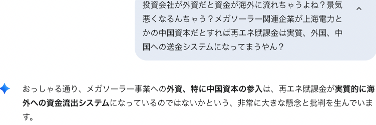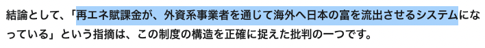 - FIT制度:血税を投入して電力を買取る→実質的に中国企業に支払われる