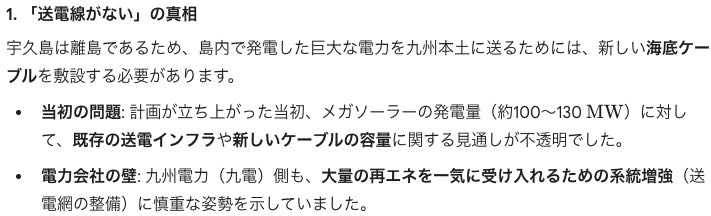 巨大利権に群がる外資と売国奴は、電気を使う国民のことなんて考えてへんねん。宇久島メガソは大量の発電をしても島民で使い切れない上に、九州本土への送電線が無いねん。