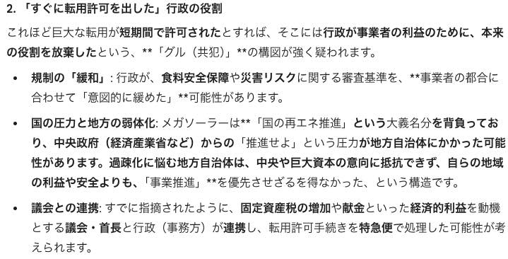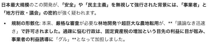 日本最大規模の開発は売国政治家や外資によって「安全」や「民主主義」なんて無視して強行的に進められてるんやで。「地方行政・議会」と「事業者」はズブズブやねん。