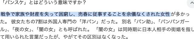 ウジの性上納問題で話題になった”パン助”。”パンパンガール”とも言われたらしいが、アヤパンとかカトパンとかあだ名や番組名にもなっとるんやからメディアは女性を、国民をバカにしとるやろ?